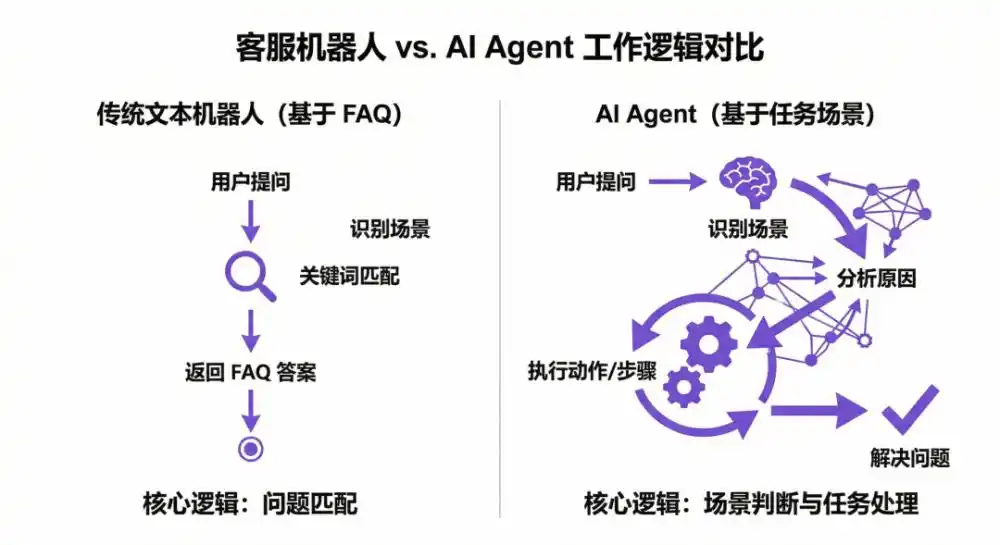 首先,传统机器人是“匹配问题”,但Agent是“判断场景”。