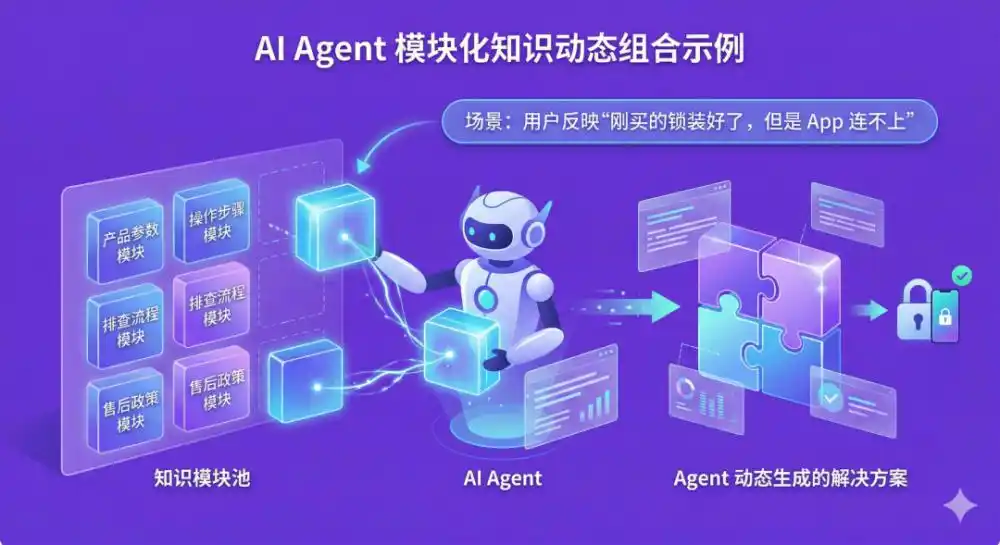知识库里可能有很多独立问题,例如:如何重置设备、如何添加指纹、如何连接APP。但真实用户的问题,往往不是一个单独问题,而是一个完整场景。例如用户会说:“我刚买的锁装好了,但是APP连不上。”这背后其实包含一整个流程:首次安装→设备连接→网络配置。如果知识库只有零散FAQ,Agent很难把这些步骤串起来。结果就是用户问一步,机器人答一步,问题始终没有被真正解决,体验非常割裂。
