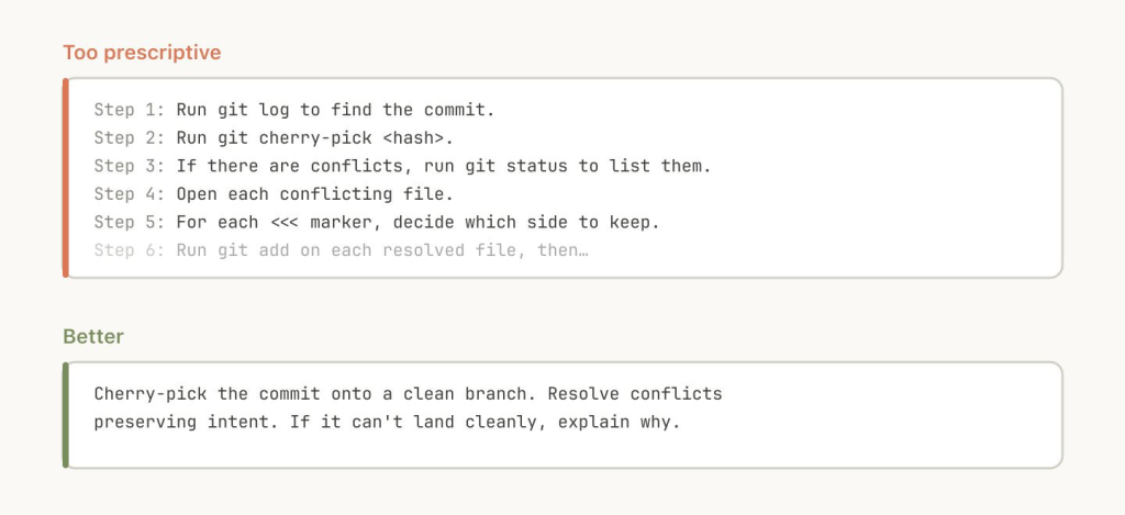 Claude 通常会努力遵循你的指令,而由于 Skills 的复用性很强,你需要注意不要把指令写得太具体。给 Claude 它需要的信息,但留给它适应具体情况的灵活性。例如: