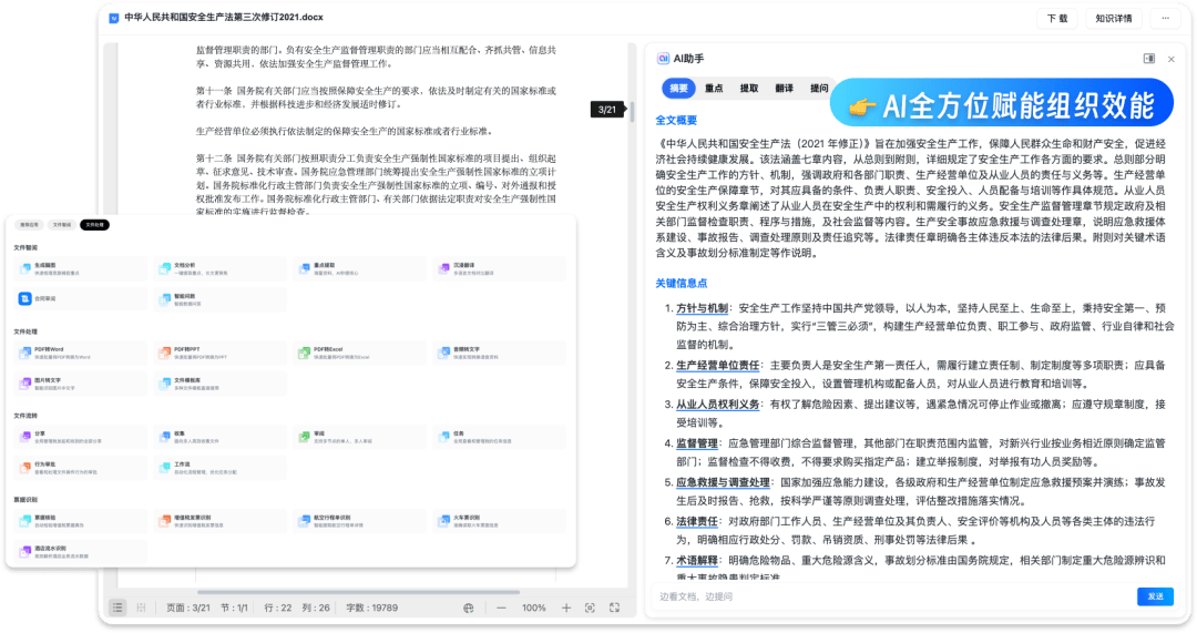 会议记录、流程审批、数据整理、跨部门沟通……现代职场在效率工具环绕下,却常陷入新的“数字泥沼”。360AI企业知识库集文件流转、文件处理、工作流、会议纪要于一体打造企业办公工具台,同时通过“AI助手”为企业员工提供安全的对话式工作助手,提高创造力并简化工作。