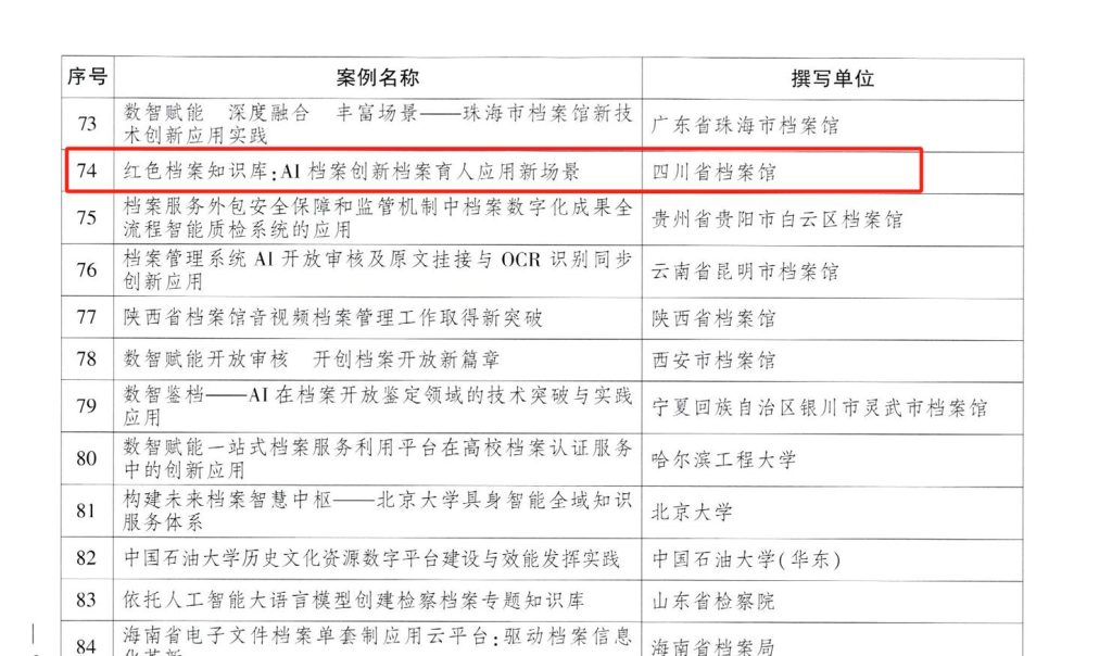 近日,国家档案局公布档案信息化创新案例征集结果,《红色档案知识库:AI档案创新档案育人应用新场景》成功入选。该知识库由四川省档案馆和四川日报报业集团共同研发,已适配线上线下多种应用场景。