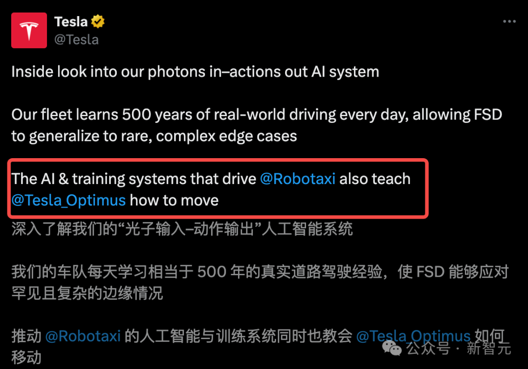 一直以来,马斯克宣称,特斯拉所打造「世界模型」是一套共用的AI大脑,并为其配上不同的「身体」——自动驾驶汽车、机器人。